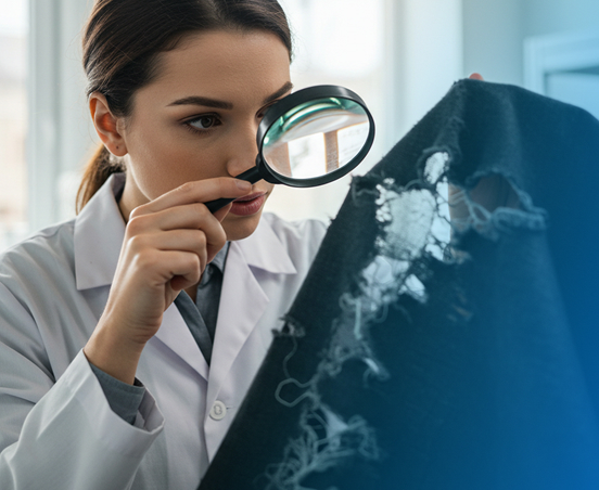 Oferecemos análises laboratoriais completas para avaliar a qualidade e conformidade de tecidos e produtos têxteis, assegurando que atendam aos padrões exigidos pelo mercado.